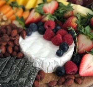 Made in France, the Camembert on our cheese platters has a firm texture and meltingly soft centre with an earthy and intense aroma and flavour. It pairs well with crusty bread, fruit, artisanal crackers, nuts, beer and wine.