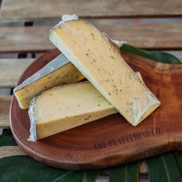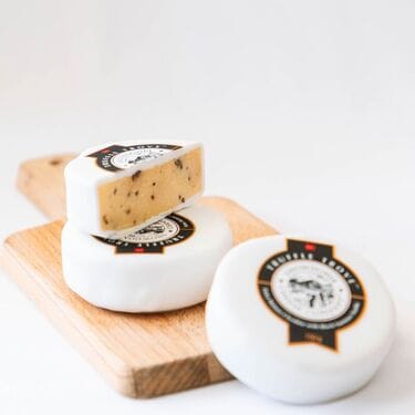 The truffle gouda is a much-needed delicacy on our cheese platters. The black truffle shavings generously spread throughout the perfectly aged cheese makes the earthy taste of truffle come to the fore. The smooth texture and unique flavour of this gouda make this exotic semi-hard cheese a crowd favourite!